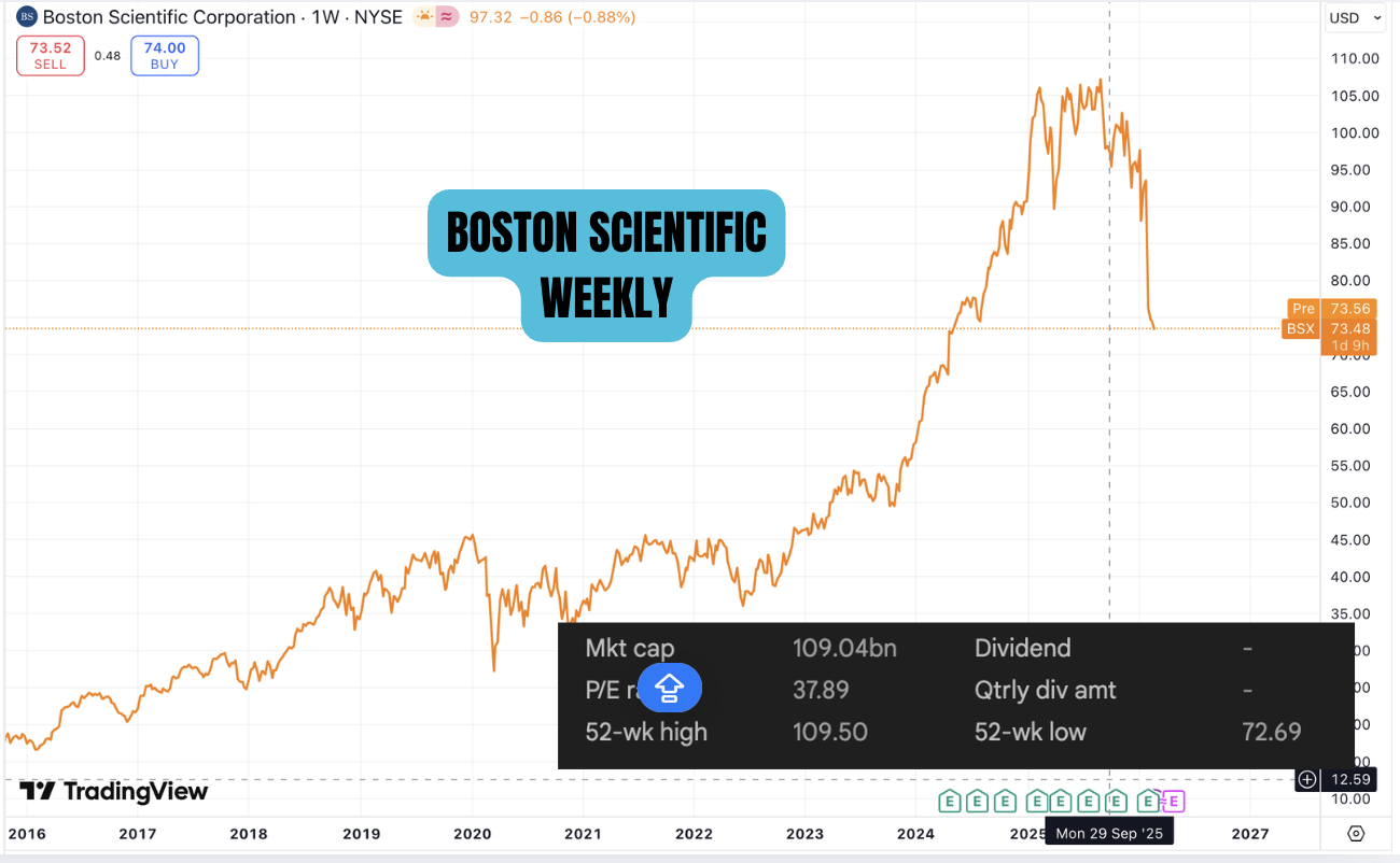 Boston scientific has been on our watchlist for more than a year. But the high valuation of the stock meant that we were never able to get in on their growth story. However more recently, following earnings the stock has sold off and this has piqued our interest. We are going to be closely watching the stock and see if it will start a bottoming process. We have already entered the stock but that is just a nibble. We need to see the stock bottom out before increasing the stake. If the price continues to fall, we will continue to add to our positions gradually. We are not afraid to be in draw down as we are very convinced with the growth story. The more the market sells off, the more we will be interested in.