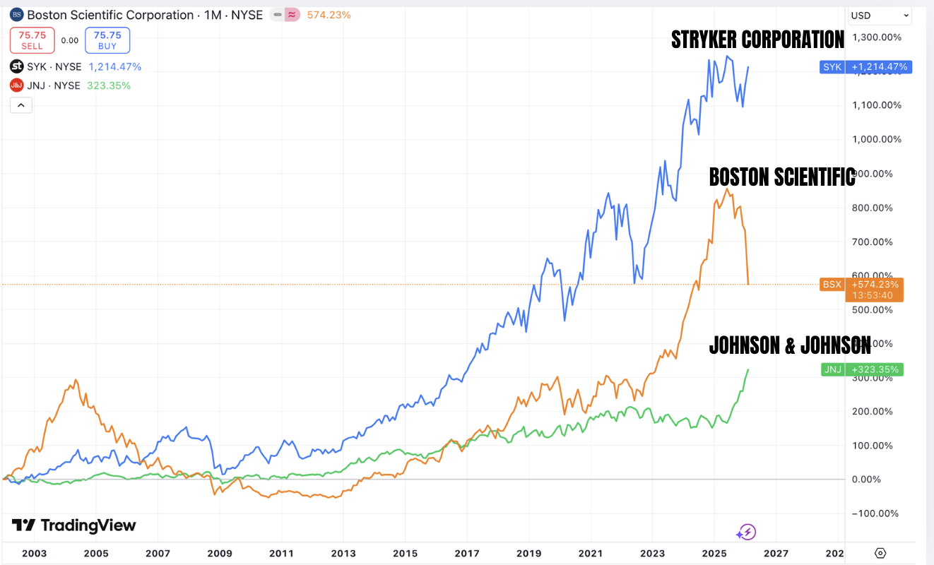 It is important to remember that even after the share price falls, Boston Scientific still trades at a high PE of 39 and so we have to be cautious here. Stryker is trading at a higher multiple of about 45 and Johnson & Johnson the lowest at PE of 22. But Boston scientific has higher earning growth compared to the other two. We think that Boston Scientific is a stock that should be on any investors watchlist and portfolio