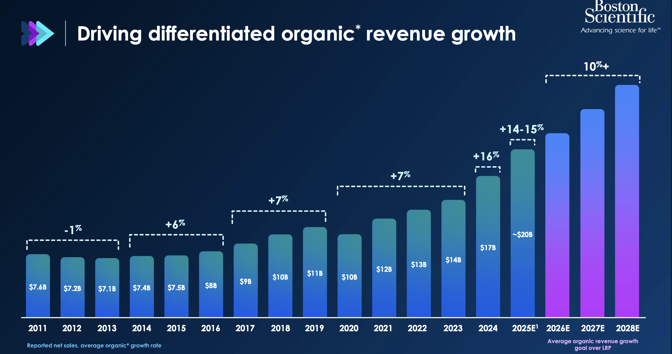 The above chart is taken from Boston Scientific investor presentation. As you can see the growth since 2014 has been tremendous and was achieved both through innovation and through strategic acquisitions. As the world ages rapidly, rising medical procedures in this subset of population will drive earnings growth in Boston Scientific. We can expect low double digit growth in revenues for more than a decade with increasing revenues from developing economies like India and Indonesia
