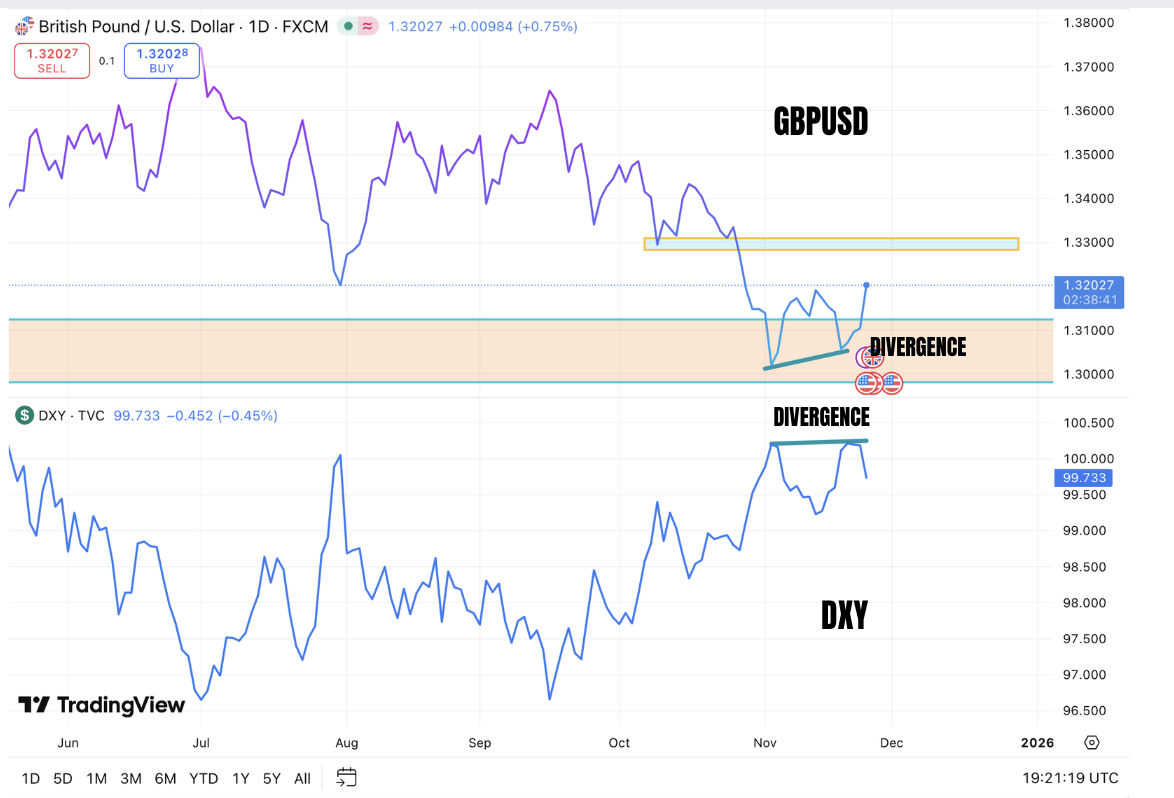 This is a reflection on the trade we took on 25/11/2025 and 26/11/2026. For context, 26/11/2025 was the budget day where the UK chancellor would deliver widely expected tax raises on a sluggish economy. At Muffett investments, we have been bearish on the pound for a long time. Also based on our weekly analysis on DXY, we were bullish on DXY but we were more focussed on USDJPY.