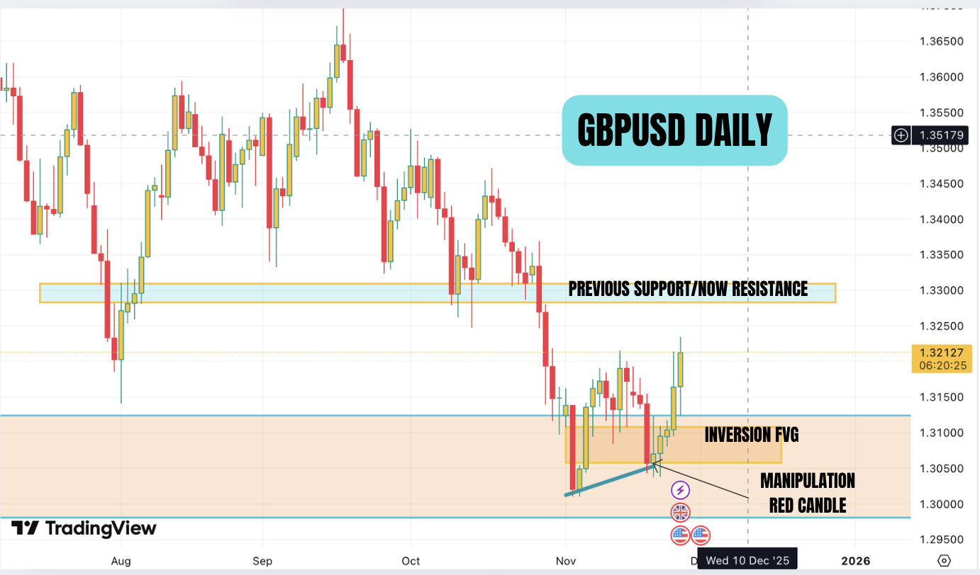 This prompted us a post on linkedin on the analysis and we shared that we are bullish on GBPUSD. We also entered a long position on GBPUSD on 25/11/2025. we took partial profits as price moved aggressively in the NY session. We knew that there is likely to be manipulation on the budget day.